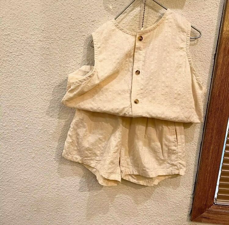 シンプルで使いやすい純綿のタンクトップとショーツのセット。カジュアルな印象を与えるアイテムです。肌触りの良いクール素材で、着心地も抜群です。着用するだけでリラックスした気分になれること間違いなし。 このセットは、忙しい朝や急な外出時に便利な1着。着こなしに迷った時や何かしらのアクセントを足したい時にピッタリです。どんなコーディネートにも合わせやすく、長く愛用できる優れものです。 このセットがあなたのワードローブに加われば、毎日のファッションの楽しさがさらに広がること間違いなし。是非、お試しになってみてください。