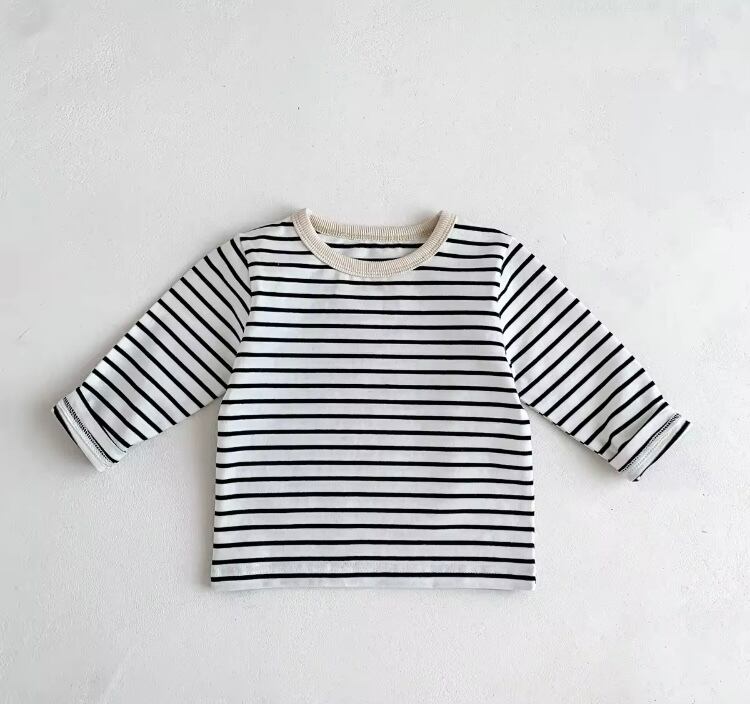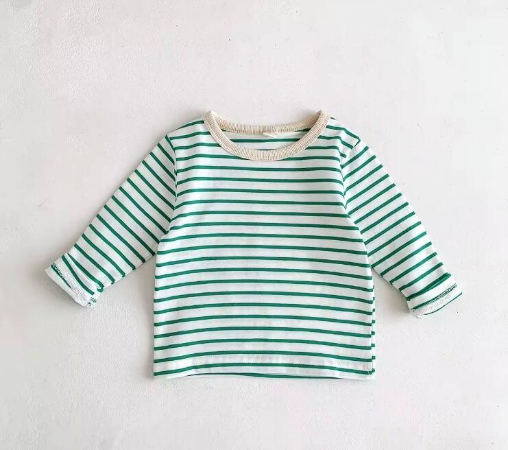 カジュアルで爽やかな印象を漂わせる一枚です。ベビーストライプ柄が可愛らしさを引き立て、コットン素材の柔らかさが着心地を良くしています。お出かけからお家時間まで、幅広いシーンで活躍すること間違いなしです。 このTシャツは、子供らしい元気な印象を与えるデザインに仕上げました。走り回る姿や笑顔も、この一枚が一層可愛く演出してくれることでしょう。さらに、丈夫な素材と丁寧な縫製で、お子様の活発な動きにもしっかりと対応します。