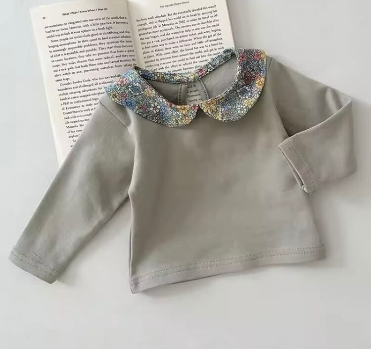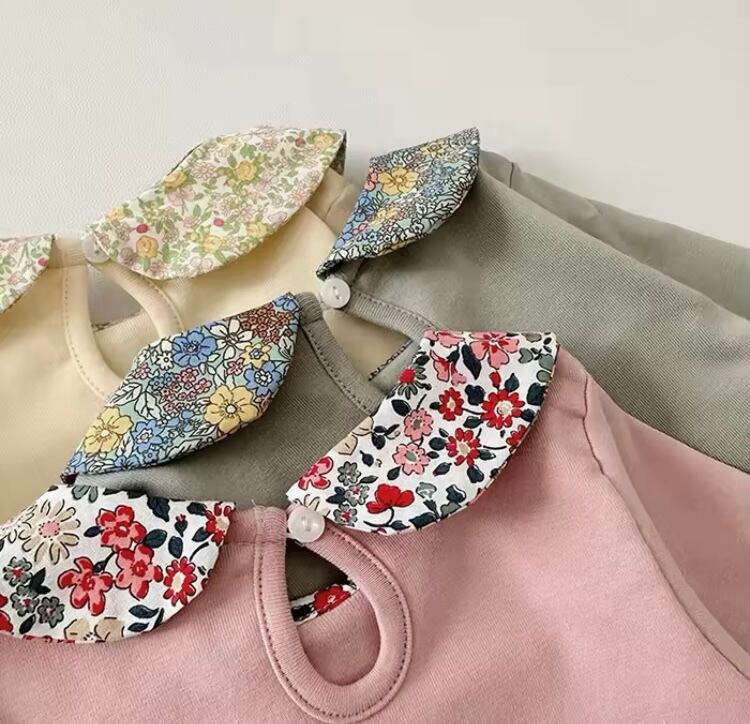 襟が可愛い花柄がアクセントのベビーTシャツ。赤ちゃんの華やかな笑顔をより引き立てるデザインです。やわらかな肌触りの素材で、赤ちゃんのデリケートな肌にも安心して着せられます。シンプルながらも、おしゃれな一枚は赤ちゃんのおでかけやおうち時間にぴったりです。 赤ちゃんとの特別な時間を彩る一枚に、ぜひこのベビーTシャツをお選びください。赤ちゃんの笑顔がさらに輝くような一枚です。