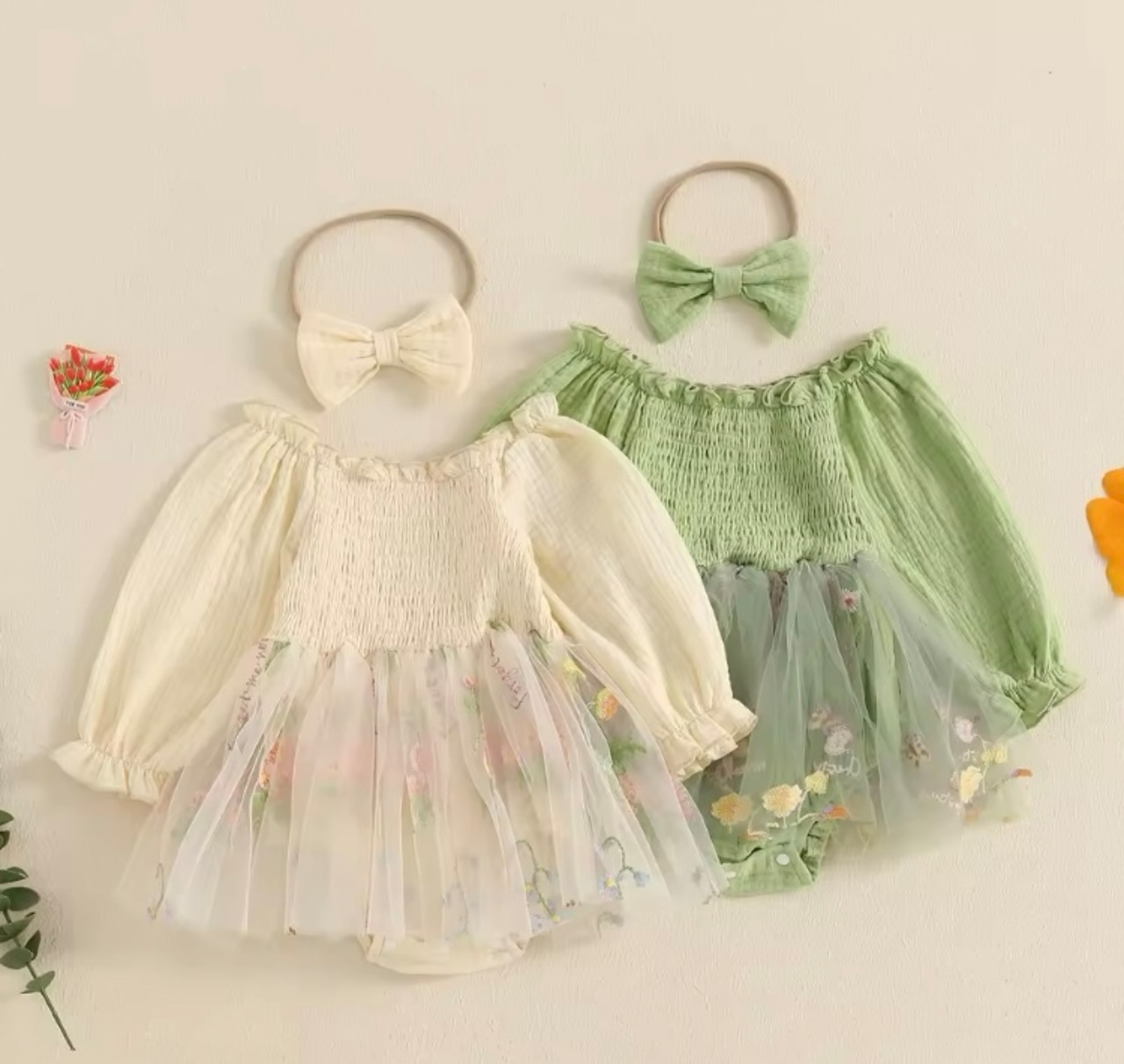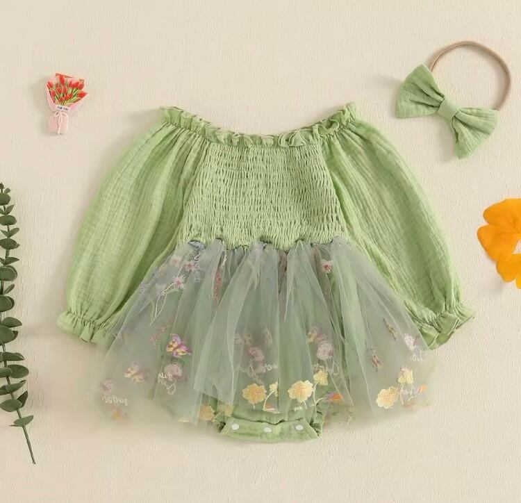 可愛らしい花柄と繊細なレースが特徴のロンパースです。赤ちゃんのデリケートな肌にやさしい素材で作られており、動きやすさも考慮されたデザインです。ボタンで着脱が簡単なので、お着替えの際もストレスなくお使いいただけます。 このロンパースは、産まれたての赤ちゃんへのプレゼントとしても人気です。花柄のレースが可愛らしく、着せた瞬間に笑顔になること間違いなし!是非、大切な赤ちゃんへのギフトとしてお求めください。