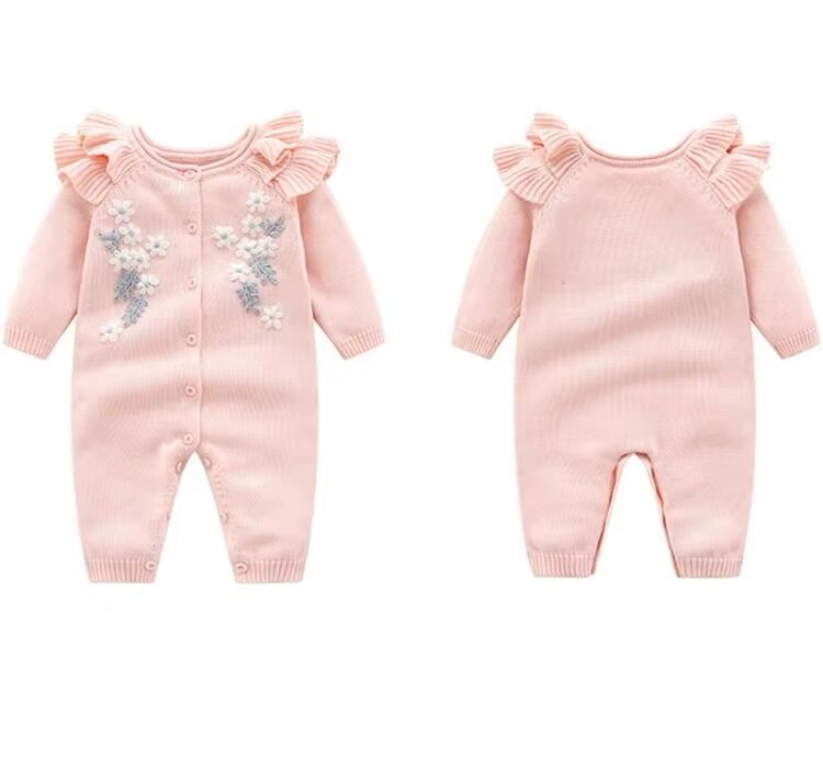 キュートな肩のフリルとお花の刺繍が可愛らしいベビー フリルロンパース。赤ちゃんのデリケートな肌にも安心して着せられるよう、柔らかくてやさしい素材を厳選しました。おむつ替えも簡単なスナップボタン付きで、忙しいママにも嬉しいデザインです。お出かけの際やお家でのリラックスタイムにぴったりの1枚です。赤ちゃんの笑顔を引き立てる可愛らしいデザインで、いつもHappyな気持ちを届けます。