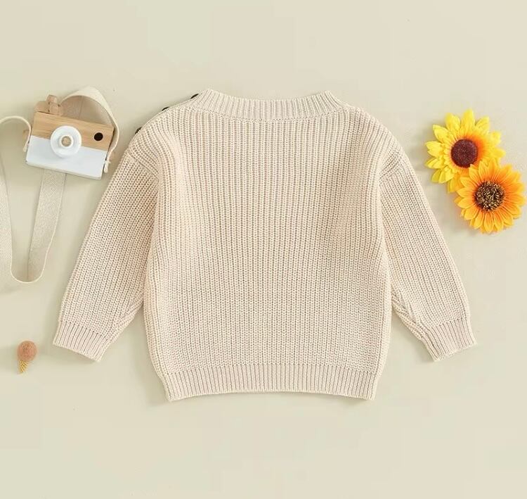 柔らかなニット素材で、敏感な赤ちゃんの肌にも優しく仕上げられており、脱ぎ着がスムーズにできるのが嬉しいポイントです。シンプルでありながら、元気なお子様の動きにもしっかりフィットし、快適な着心地を実現しました。このセーターを着て、お子様と一緒に素敵な毎日を過ごしましょう♡