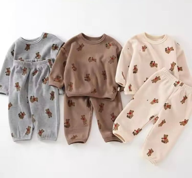 柔らかな素材で作られており、敏感な赤ちゃんの肌にも優しい仕上がりが特徴です!かわいらしいクマプリントが施されており、リラックスタイムにもぴったりのおしゃれなデザインです。自由に動き回るお子様にも最適なフィット感を追求し、快適な着心地を実現しました。このパジャマセットを着て、安心して素敵な夜のひとときを過ごしましょう♡