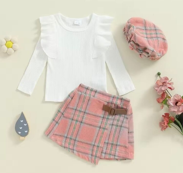 柔らかなニット素材で仕立てられており、敏感なお子様の肌にも優しい着心地が特徴です!市松模様のスカートとフリル付きの帽子のセットは、かわいらしさとおしゃれさを兼ね備えています。アクティブなお子様にもぴったりのフィット感を大切にし、楽しい時間を過ごせるアイテムです。このニットスカート帽子セットを着用して、一緒に特別なひとときをお過ごしください♡