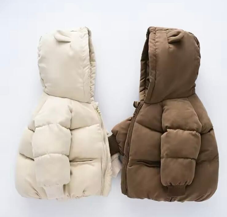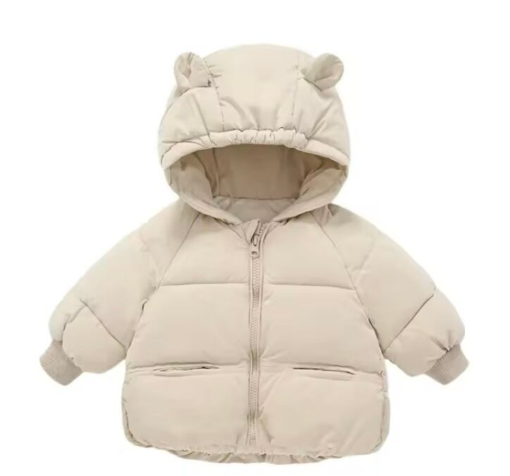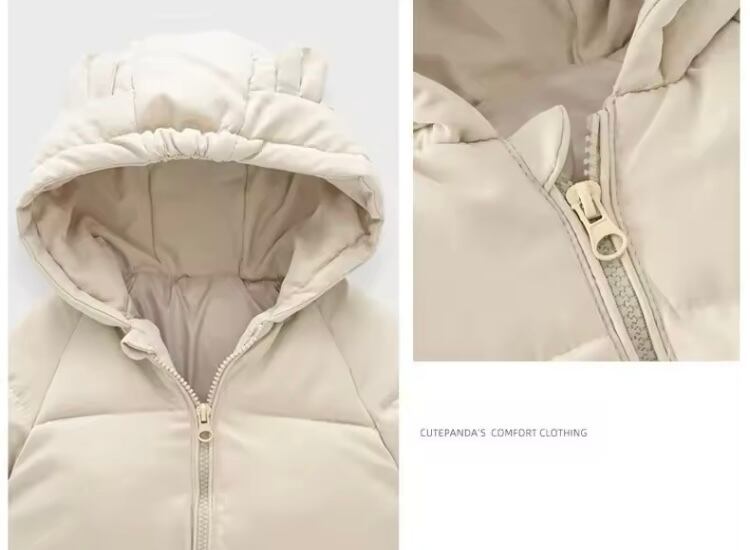 フードに可愛いクマの耳がついたデザインのダウンジャケットです。柔らかな綿素材で作られており、お子様の快適な着心地をしっかりサポートします。寒い日もこのジャケットで心も体も暖かく、お外で楽しい冒険を楽しみましょう!可愛らしいスタイルが、日常をもっと楽しいものに変えてくれますよ♡
