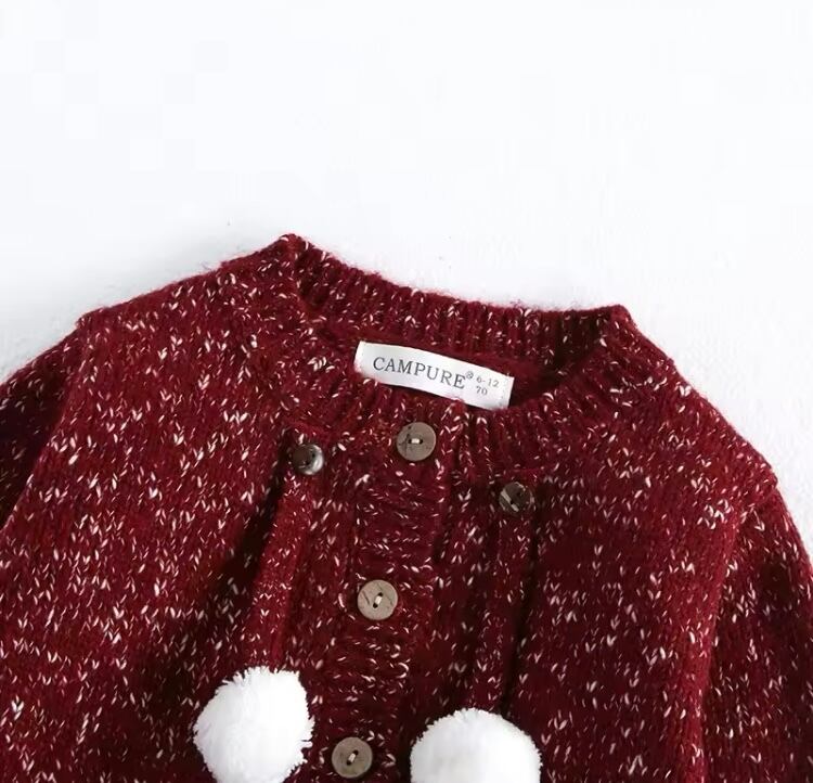 ボンボン付きデザインが魅力のベビーキッズカーディガンです!レトロな雰囲気を醸し出すゆったりとしたシルエットが、可愛らしさを引き立てます♬ お友達との遊びや家族のお出かけを、キュートに演出してくれる一品です!