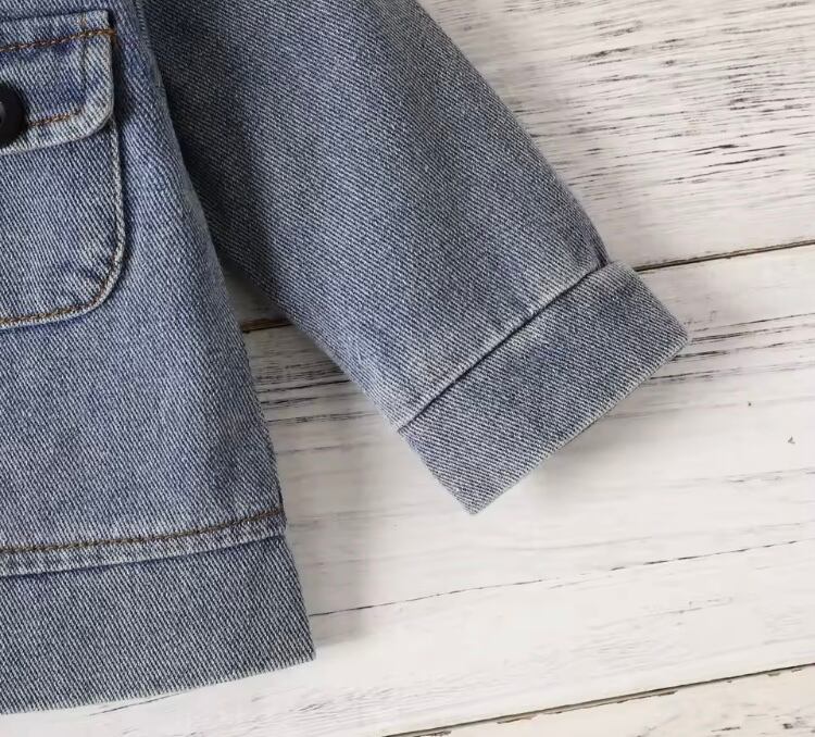 カジュアルニットステッチが特徴のベビー デニムジャケットは、おしゃれでありながらも動きやすさを重視したアイテムです!どんなコーディネートにも合わせやすく、毎日のファッションに大活躍します♬ ゆったりとしたシルエットが、お子様の自由な動きを妨げず、遊びやお出かけにぴったりの一着です!