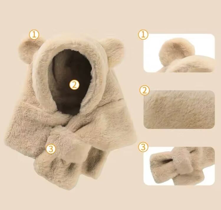寒い季節にぴったりな、ベビー 帽子マフラーです!可愛らしいクマのデザインが特徴で、防風機能を備えたフェイクファー素材が、赤ちゃんを優しく包み込みます♬ 軽やかなつけ心地で、外出時も安心してご使用いただけるアイテムです。寒い日のお出かけやお散歩を楽しくしてくれる一品として、自信を持っておすすめします。