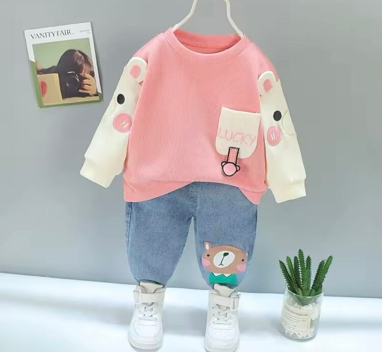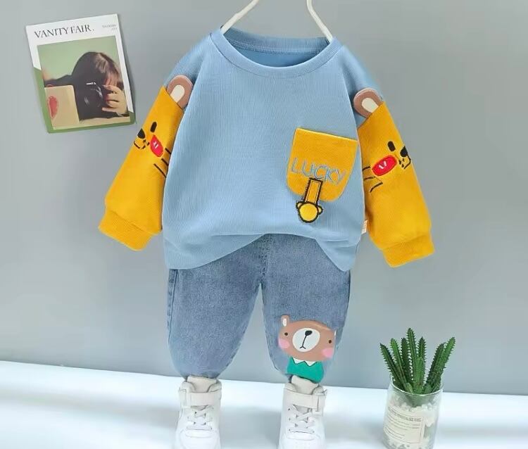 カジュアルでかわいらしい、ベビーキッズ 上下セットです!綿素材を使用しており、肌触りが非常に柔らかいのが特長です♬ 両腕には愛らしいクマさんとウサギさんのデザインが施され、ズボンにもクマさんがあしらわれています。赤ちゃんのデリケートなお肌を優しく包み込みながら、楽しい気分で着こなせるアイテムですので、ぜひお手元に迎えてください!