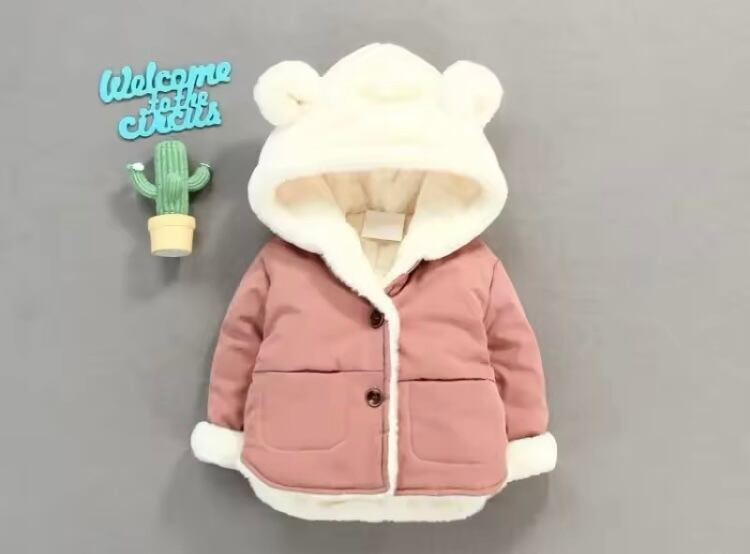 カジュアルでかわいい、ベビーキッズ アウターです!フードに耳付きのデザインが特長で、愛らしい印象を与えます♬ 厚手のフリース素材はとても柔らかく、寒い季節のお出かけでも暖かくお過ごしいただけます。肌に優しく、動きやすさも考慮されたこのジャケットは、遊びに行く時やお家でのリラックスタイムにも最適な一枚ですので、ぜひお手元に迎えてください!