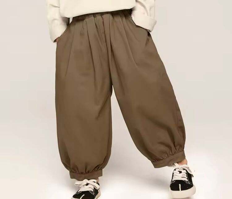 おしゃれでリラックス感のある、ベビーキッズ パンツです!このパンツは、コットン素材のランタンパンツで、ルーズなシルエットが特長のカジュアルアイテムです♬ 柔らかい素材で作られているため、肌触りが良く、遊びやお出かけにもとても快適です。お子さまのスタイルを引き立てるこのパンツを、ぜひ取り入れて毎日のコーディネートを楽しんでください!