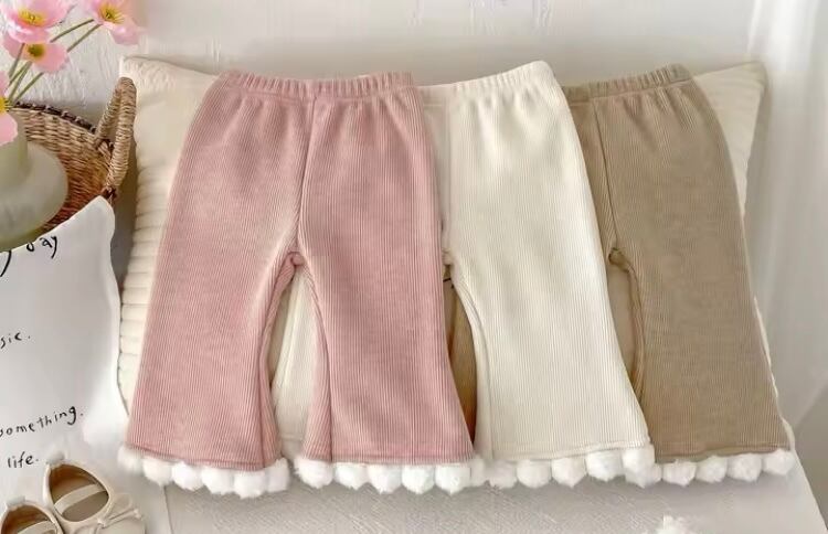 ベルベット素材を使用したフレアパンツは、カジュアルさと可愛らしさを兼ね備えたアイテムです♬ 柔らかい質感が心地よく、お子さまの動きにフィットします。デイリーコーディネートに取り入れやすく、遊びやお出かけにもぴったりです。このパンツを着用して、楽しい毎日をお過ごしください!